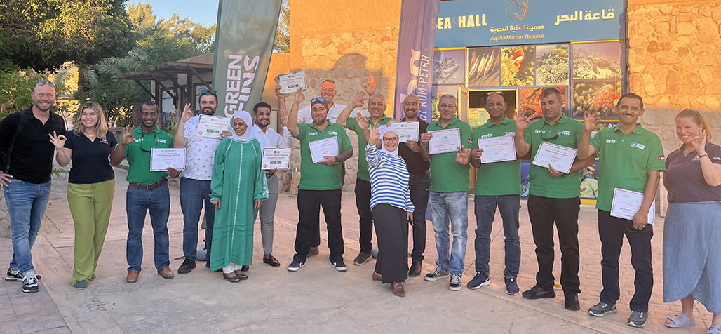 Author: Dominik Wyszogrodzki e-mail: dom@mustgodiving.com Nestled along the pristine shores of the Red Sea, Aqaba is more than just a picturesque trav-el destination; it's a sanctuary for both marine life and adventure seekers. With its breath-taking underwater landscapes and commitment to sustainable tourism, Aqaba has emerged as a top-notch scuba diving hub and, together with the Reef-World Foundation, is taking a monumental leap towards sustainable tourism with the Green Fins programme. Organised by the Aqaba Special Economic Zone Authority (ASEZA), with the invaluable support of the Deutsche Gesellschaft für Internationale Zusammenarbeit (GIZ) implemented MSME Project and the International Union for Conservation of Nature (IUCN), this initiative aims to en-hance the competitiveness of local dive centres, provide unforgettable experiences for envi-ronmentally conscious divers, and safeguard its precious Aqaba Marine Reserve (AMR). Let's take a minute and delve into the Green Fins programme and its role in promoting sustaina-ble tourism in Aqaba, catering to the international travel trade and the scuba diving community.