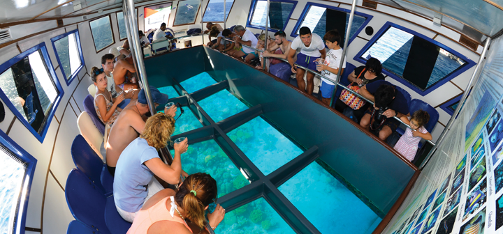 Experience the beauty of the Aqaba Gulf like never before on a glass-bottom boat! Relax on deck and marvel at the stunning underwater world beneath you through the boat's clear bottom. With this unique perspective, you'll be able to see the colourful coral reefs and diverse marine life without getting wet. Get lucky and catch a glimpse of the vibrant parrotfish, rainbow fish, stone fish, chicken fish, and even the beloved clown fish. Don't miss this chance to explore the wonders of the Aqaba Gulf in comfort and style.
