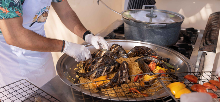 Satisfy your taste buds with a local favourite, sayyadieh, a deliciously spiced fish dish served on a bed of rice. Or keep it simple with fresh Red Sea fish like hammur or sultan ibrahim cooked to perfection on the grill and served with a side of crisp salad.