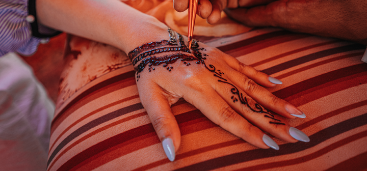 Experience the beauty of henna art, an ancient tradition still practised by Arab women for hair and skin treatments. Today, henna is used alongside modern cosmetics. It's also an essential part of bridal rituals where the bride and her female guests gather for a Leylat Al Henna or Henna Night to sing and dance while the bride herself is beautified with elaborate henna tattoos on her hands and feet. Visit one of the beauty salons and get a pretty, non-permanent tattoo for yourself.