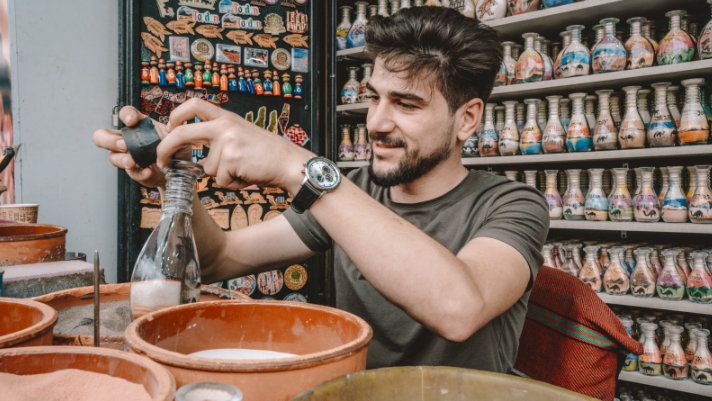 Aqaba's craftsmen create beautiful desert scenes in small bottles filled with sand, and they're happy to customize them with your name or your loved ones. This personalized souvenir is a unique way to cherish your visit to Aqaba.